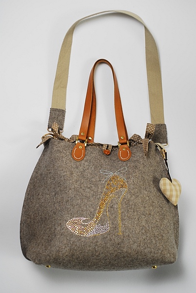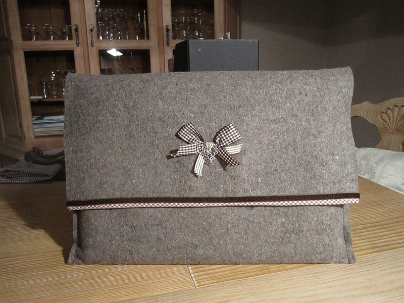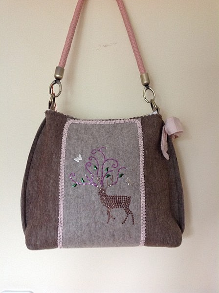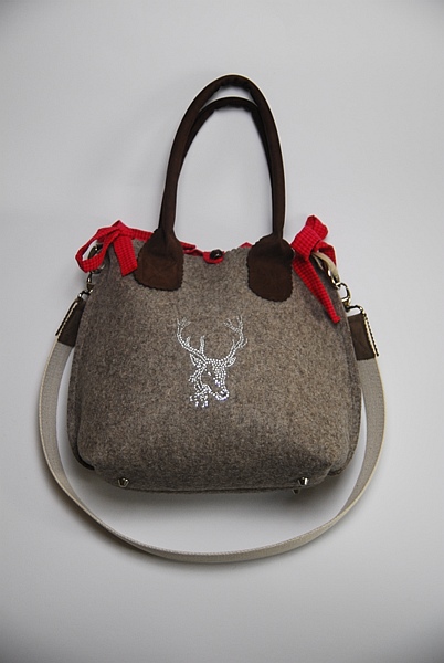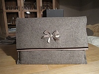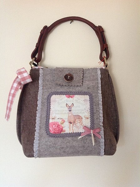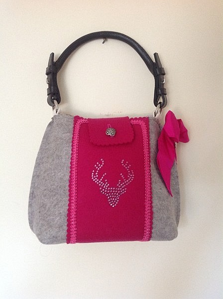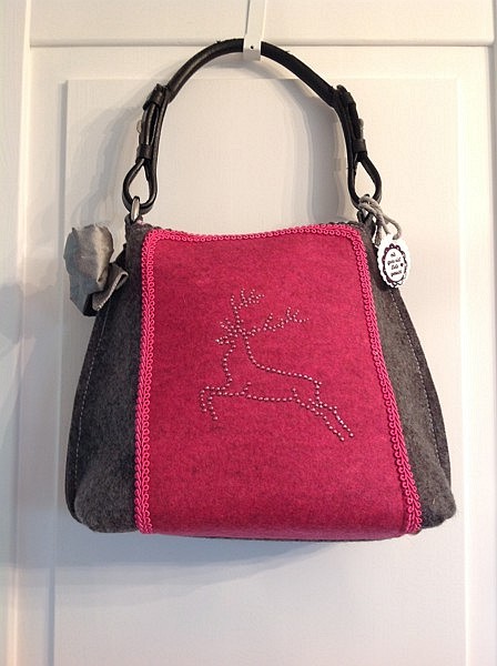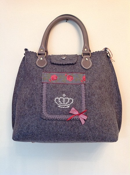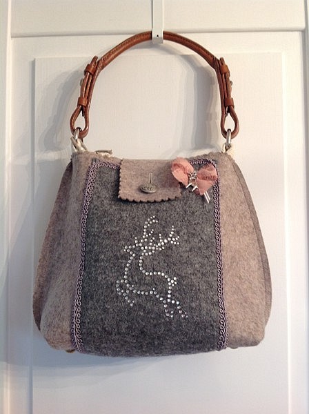 Die Handtaschen stelle ich mit sehr viel Liebe zum Detail zusammen. Die Futterstoffe werden sorgsam zum Filz ausgesucht, ebenso die Borten und Applikationen. Die Schleifen sind immer passend zum Innenfutter entweder aus Baumwolle oder Seide und ein schöner Knopf rundet das Gesamtbild harmonisch ab.