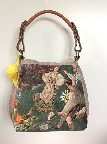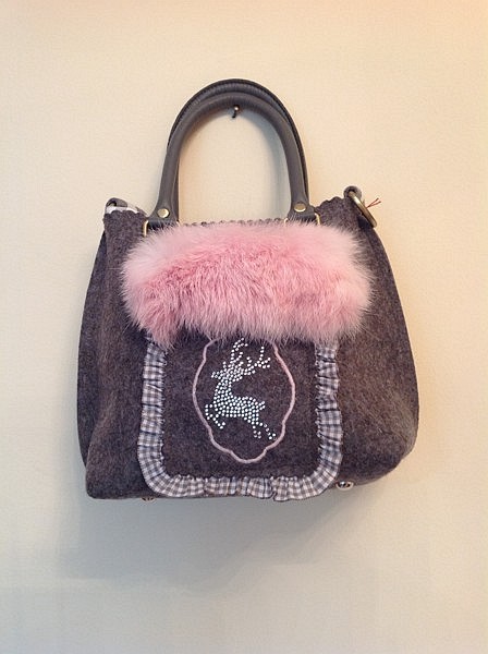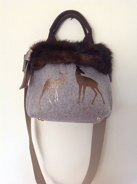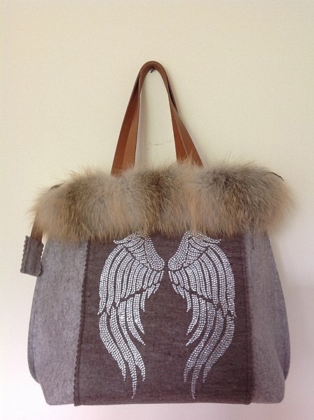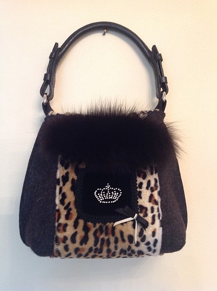 Die Pelzbesätze sind aus Fuchs, Kaninchen oder Nerz. Aus Liebe und Respekt vor den Tieren kaufe ich die Pelze "Second hand". Der Pelz am oberen Rand der Tasche ist oftmals abnehmbar.
